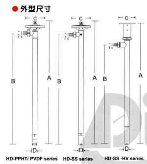 | 組成,抗化學物質佳。軸心材質為SUS316及Hastelloy 、泵管主體材質為PPHT(玻璃纖維)、PVDF和SUS316為輸送化學物質之最佳工具。 | ||