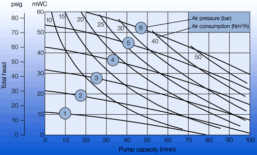 | at max. 6 bar | 100 | 100 | 70 | 130 |