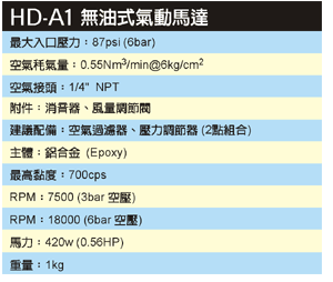 | 高轉速氣動馬達 HD-A1+套管 (SS、PPHT、PVDF) HD-A2+套管 (SS、PPHT、PVDF) | |
